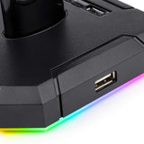 - Metal Core with Safety - 8.5 in height aluminum supporting bar will hold and protect your headset well. The swirling cover for the 2 surface USB ports can be closed to prevent water or dust when you need those USB hubs to take a break.