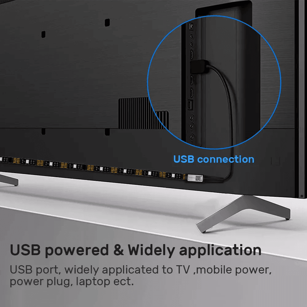 - SAFER TO USE: TV Backlights Operate at voltage of 5V. Just a 5v power bank for light strip working, , extremely low-heat, touchable and safe for children.